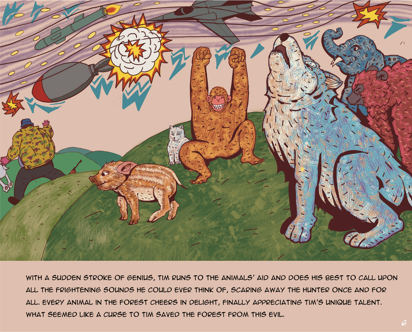 Tim the Wolf has a peculiar problem - he cannot howl properly. Every time he tries, he lets out strange and unexpected sounds. His fellow forest creatures find this hilarious. However, his unconventional howling scares away a threat in the forest, and saves the day, demonstrating that even his peculiar talent has merits.